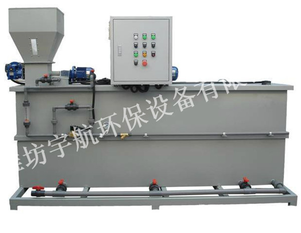 本設備可滿足固體和液體絮凝劑的自動制備,主要由:三腔藥箱,自動吸料機、自動投粉機、自動配水系統、出藥系統,就地電氣控制系統等組成。